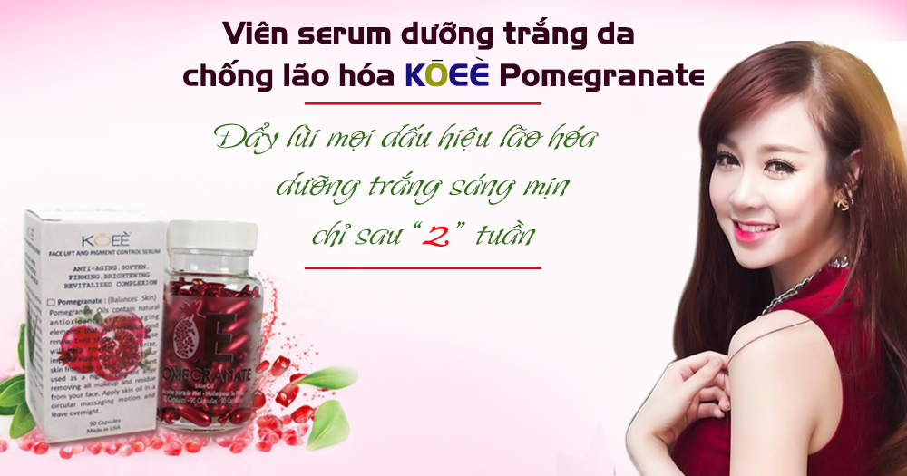 + Với chu trình 30 ngày, viên serum dưỡng da KOee skin oil pomegrante mang lại cho bạn hiệu quả bất ngờ với làn da trắng sáng hơn, hồng hào, mịn màng trẻ trung hơn bao giờ hết.