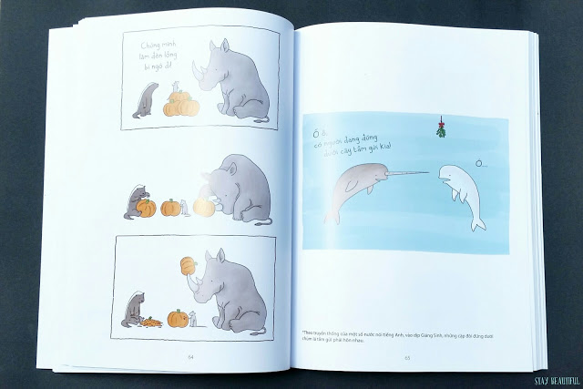 Cuốn sách là tập hợp những câu chuyện siêu ngắn trong 1 đến 3 khung hình của Liz Climo, nhiều câu chuyện đọc lời thoại xong nhìn hình thấy ngớ ngẩn lạ thường nhưng vẫn siêu dễ thương, siêu đơn giản. Mình thích cuốn sách này ở chỗ là nó không có cốt truyện (đỡ mắc công theo dõi, đỡ nhớ trước nhớ sau đau đầu :)) ), hình vẽ đơn giản không cầu kì, tác giả cũng sử dụng những tông màu trầm ấm cho sách, không sử dụng những tông màu rực rỡ nên tạo cảm giác rất quen thuộc và gần gũi khi xem.